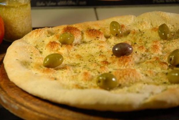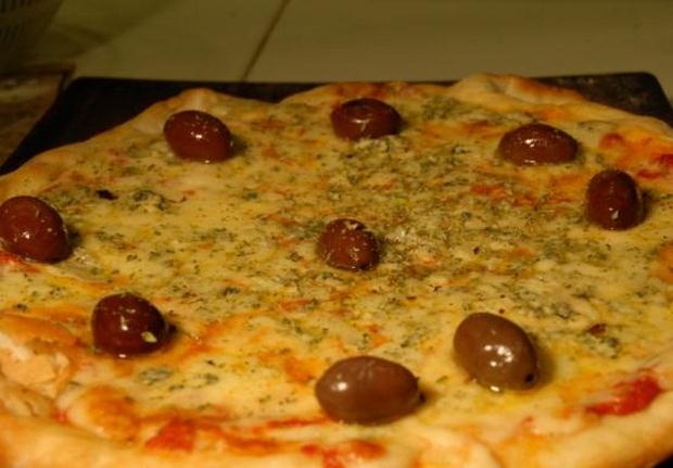 Pizza Oliva y Queso... Queso parmesano rallado, aceite de oliva, oregano y aceitunas verdes